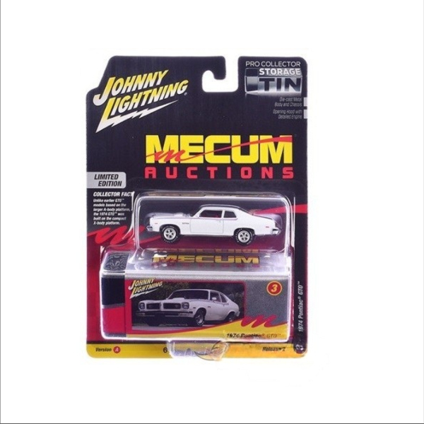 JOHNNY LIGHTNING 1974 Pontiac GTO Mecum Auctions in White with Red, White, and Blue Stripe