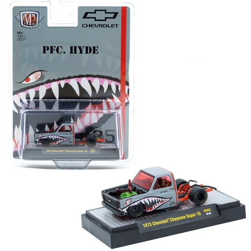 M2 Machines 1:64 1973 Chevrolet Cheyenne Super 10 “PFC. HYDE” Shark Face