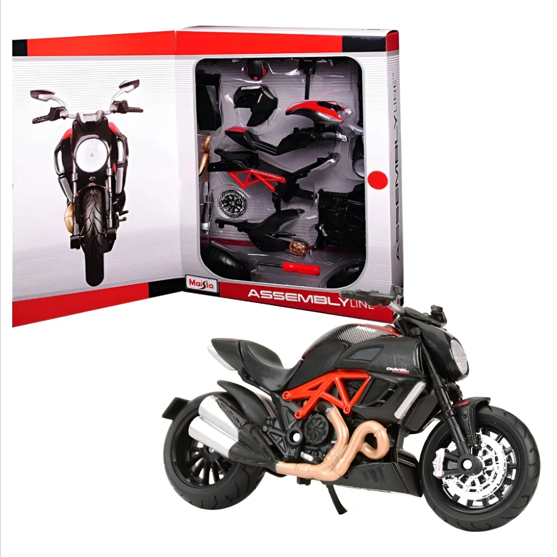 MAISTO Ducati Diavel Carbon Motorcycle in Red and Black – Assembly Line Diecast Metal Model Kit – Skill Level 2