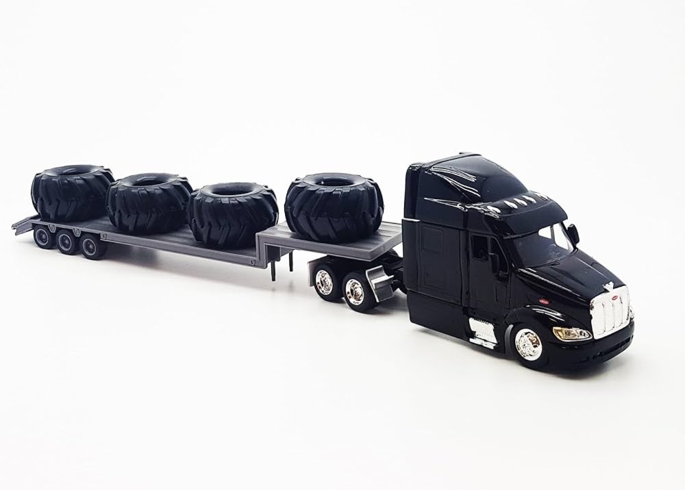 NEW RAY HTC – 143° Peterbilt 387 Flat Trailer Truck + Tyres