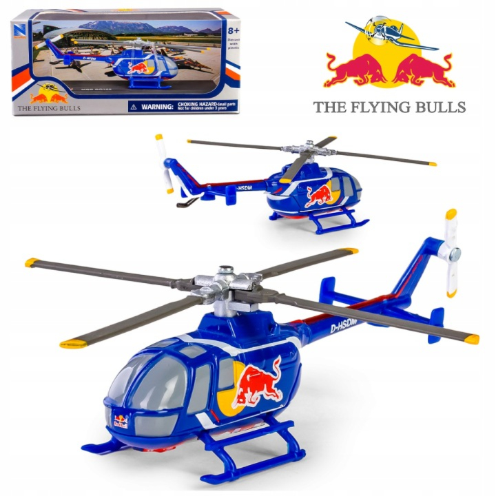 NEW RAY MBB BO105 HELIKOPTER THE FLYING BULLS METALOWY MODE