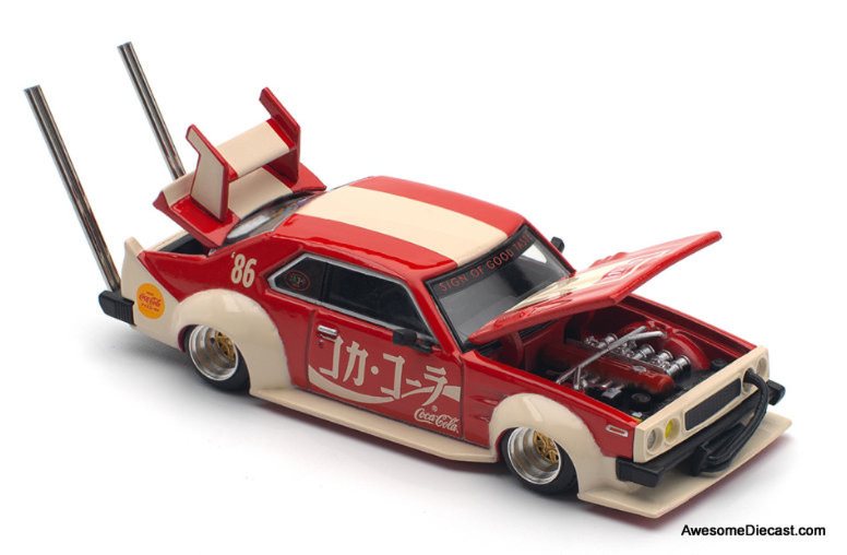 POP RACE Nissan Skyline C210 Kaido Racer Bosozoku Style, Coca Cola Livery 1:64 Diecast Model Car by Pop Race