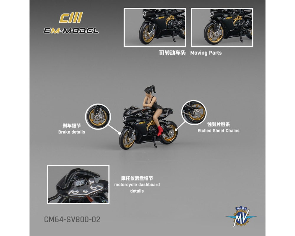 PRE VENTA CM Model MV Agusta SV800 with Showgirl Figure – Black – Limited Edition